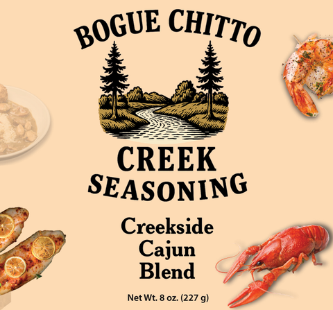 From the slow-moving waters of Bogue Chitto Creek comes a bold Cajun blend packed with rustic Southern flavor. Creekside Cajun Blend is a handcrafted seasoning that brings together classic bayou spices with a smooth, smoky finish. Perfect for everyday cooking or back porch barbecues, this blend turns any meal into a down-home Cajun feast.